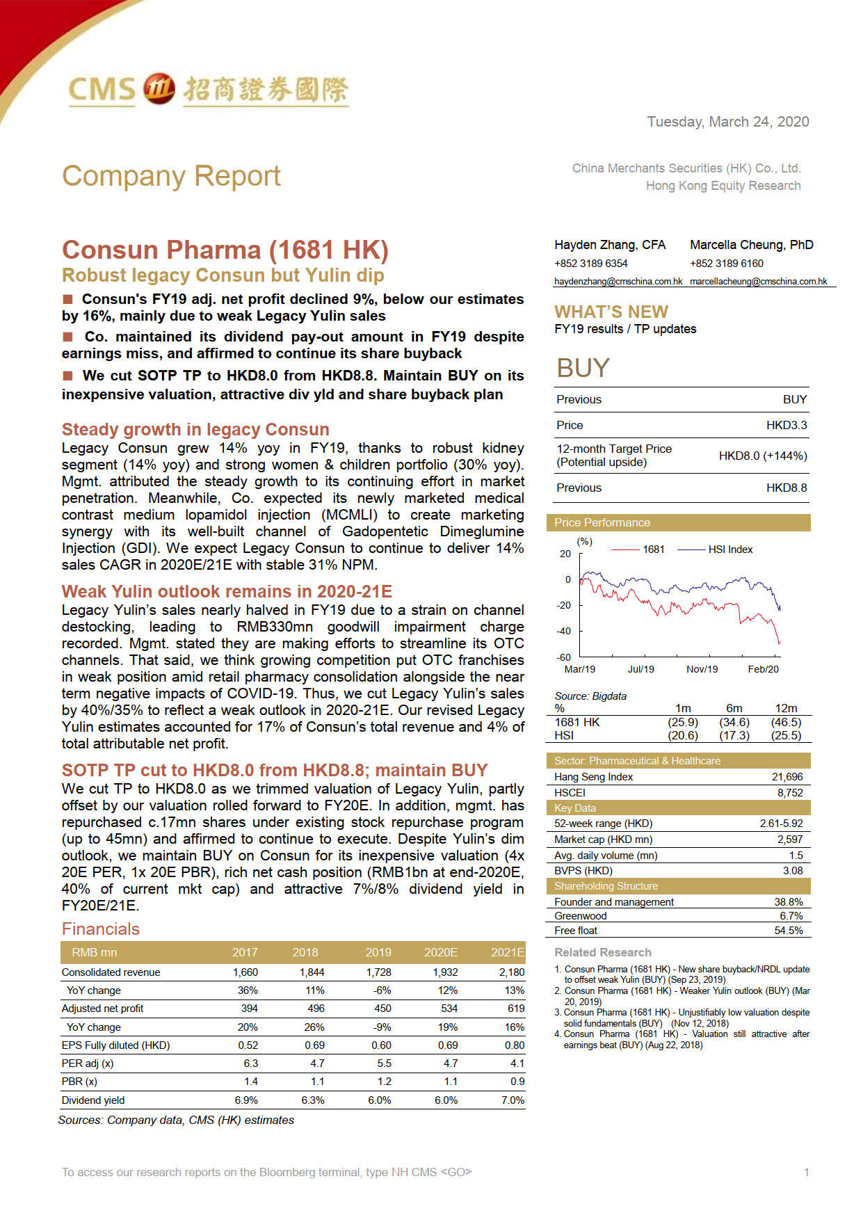 招商證券-康臣藥業(yè)1681:維持買入評級,目標(biāo)價調(diào)至8.0港元