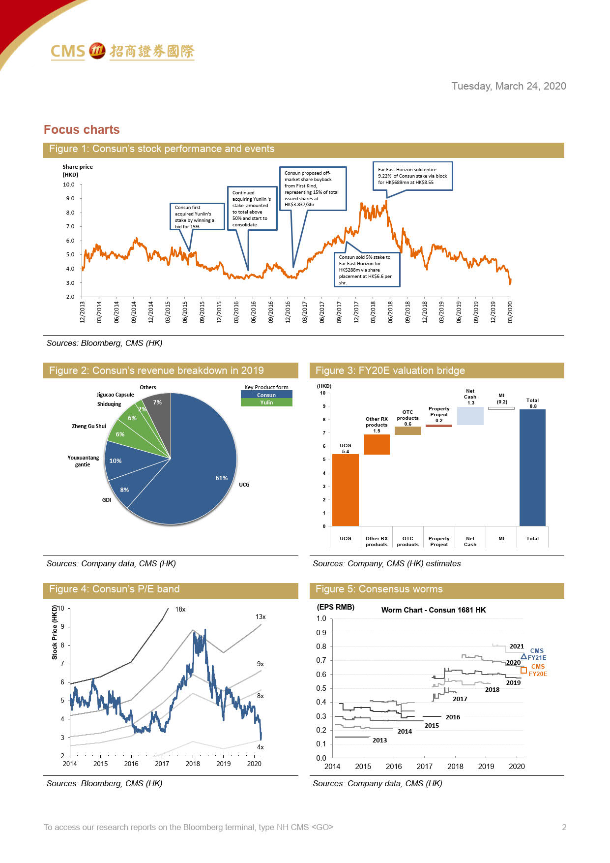 3、由于渠道去庫存壓力,玉藥分部的銷售額幾乎減半,也導(dǎo)致商譽減值約3.3億元。管理層表示他們正在努力優(yōu)化OTC渠道。但是在零售藥店整合以及疫情短期負(fù)面影響的背景下,競爭加劇將使OTC專營店處于弱勢地位,因此將玉藥2020-2021年的展望收入分別下調(diào)至3.34億元、3.61億元(2019年9月23日展望玉藥2020-2021年收入分別是5.98億元、6.05億元)。