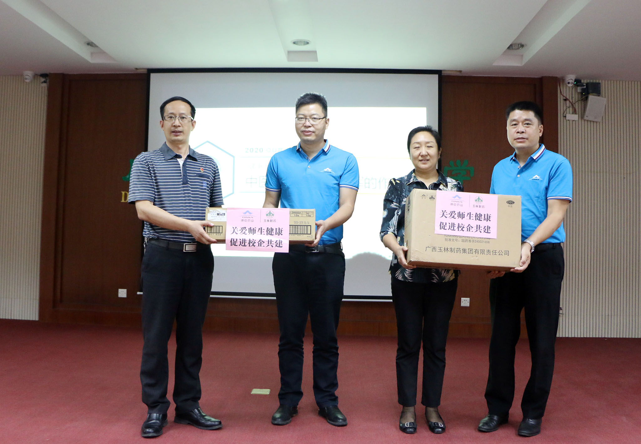 (總裁辦主任邢紅輝和副主任馬海勇代表公司向?qū)W校贈(zèng)藥)