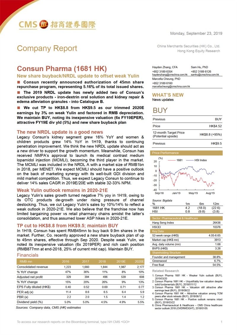 康臣藥業(yè)1681:新股票回購計劃和醫(yī)保目錄更新抵消玉林業(yè)績調(diào)整影響