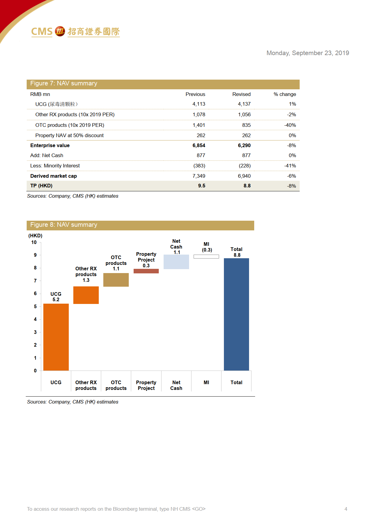 3、由于玉林業(yè)績調(diào)整和考慮人民幣貶值因素,將公司2020E盈利下調(diào)3%,目標(biāo)價8.8港元(上一次目標(biāo)價9.5港元)。