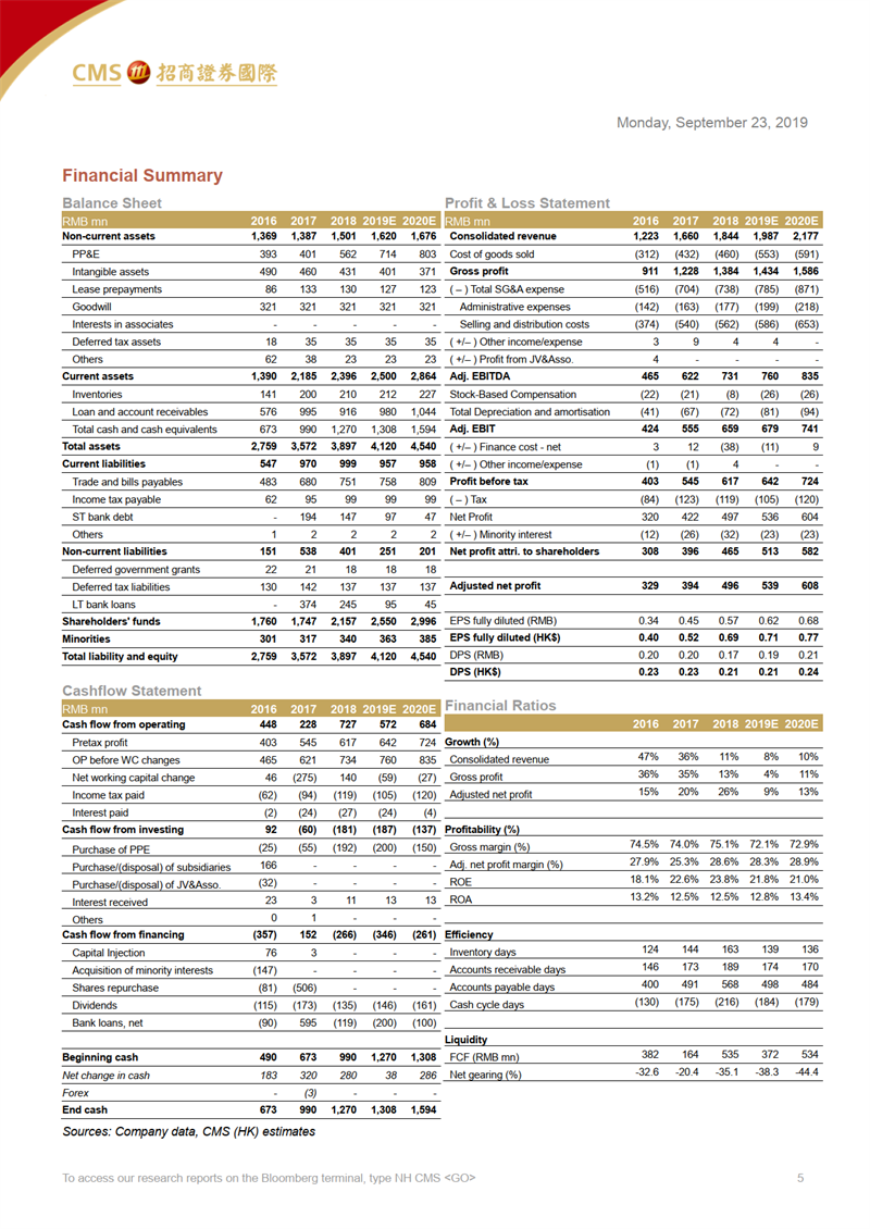 預(yù)計康臣分部的收入在2019E/20E維持14%的年均復(fù)合增長率,凈利率穩(wěn)定在32%-33%。