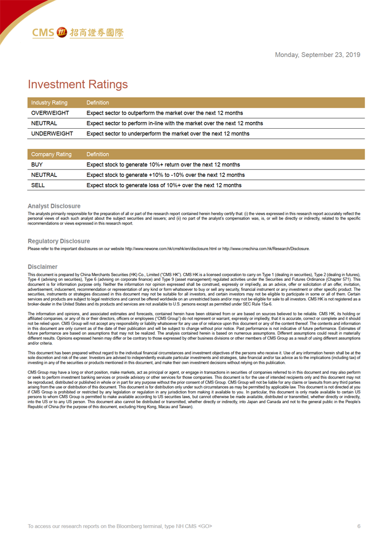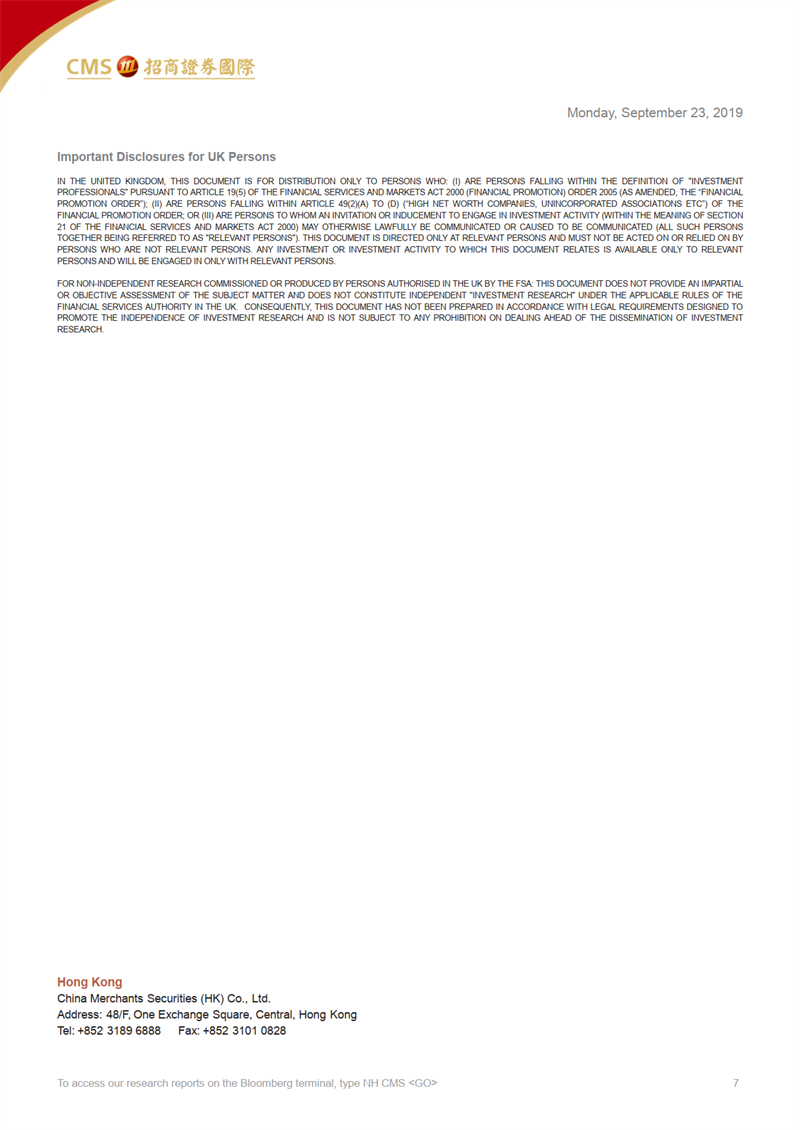 4、因低廉的估值(2019年PE6倍)、有吸引力的派息率(2019年股利5%)和新的股票回購計劃,維持“買入”評級。