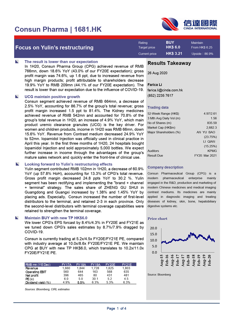 信達國際-康臣藥業(yè)1681:關(guān)注玉林重組,維持買入評級,目標(biāo)價調(diào)至6.0港元