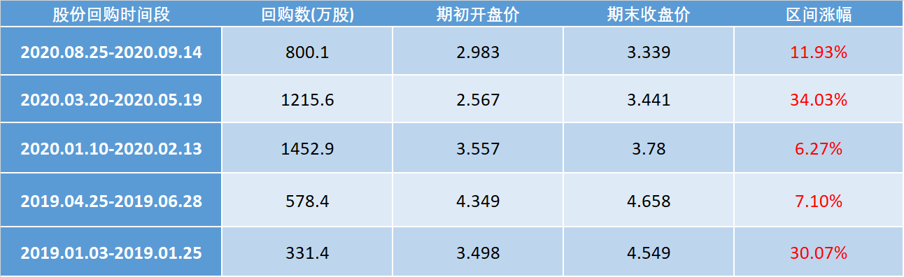 圖:2019-2020年部分股份回購(gòu)情況分析