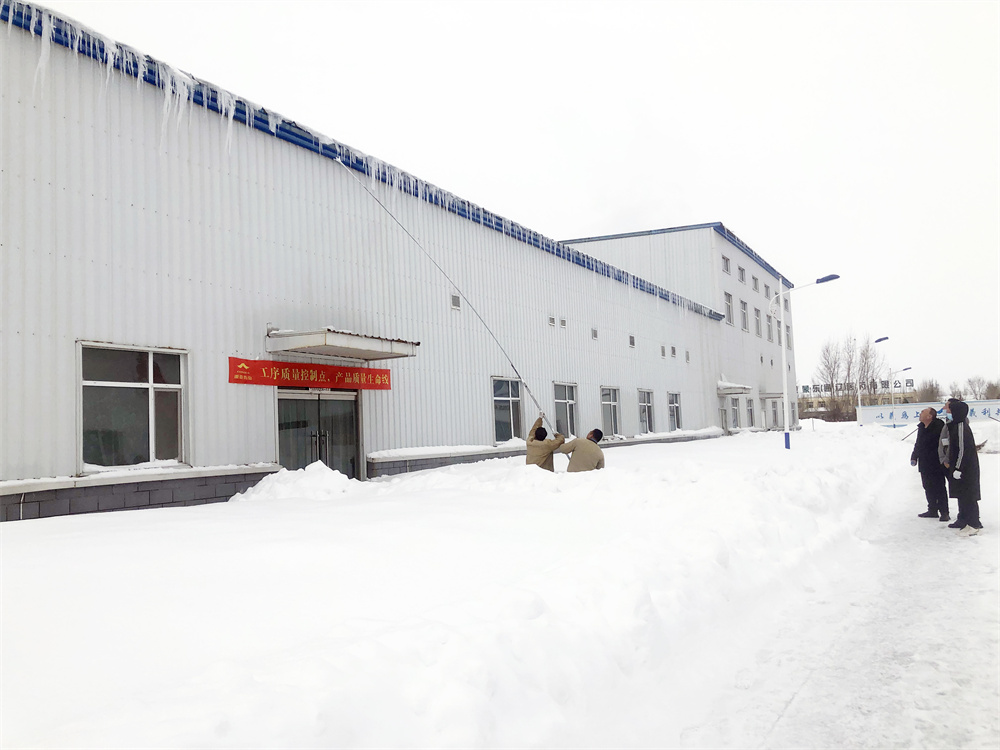 內(nèi)化于心,外化于行。念念不忘,必有回響。2021年11月7日,內(nèi)蒙基地遭遇70年不遇特大暴雪。一夜之間,內(nèi)蒙古通遼市變成了一座雪城。滿城白雪皚皚,大雪將車輛道路淹沒,足有一人高的積雪一望無際。大雪封路,只能徒步去上班,值得欣慰的是,當(dāng)天各崗位沒有無故缺勤脫崗人員,出勤率達(dá)到98%。令人擔(dān)心的是大雪長時(shí)間堆積,勢(shì)必會(huì)對(duì)建筑造成傷害,王曉明來到公司后第一時(shí)間前往各車間查看受暴雪影響情況,排查發(fā)現(xiàn)提取車間11根承重鋼梁、中藥材倉庫15根承重鋼梁都被壓彎,隨時(shí)有坍塌風(fēng)險(xiǎn),情況險(xiǎn)峻。王曉明當(dāng)機(jī)立斷,請(qǐng)示公司領(lǐng)導(dǎo)后緊急請(qǐng)求當(dāng)?shù)貞?yīng)急部門派車支援,然后帶領(lǐng)車間員工通過搖曳的消防車吊籃緊急除雪,最終化解了危險(xiǎn)。