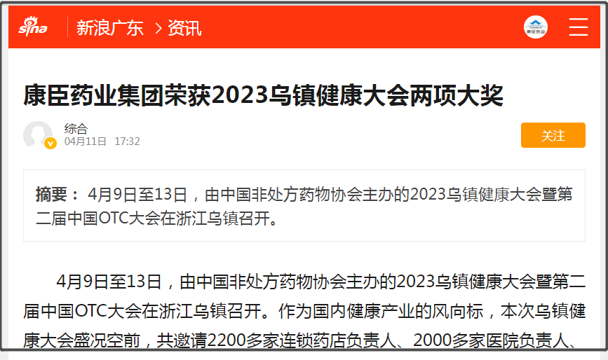 喜報(bào) | 康臣藥業(yè)集團(tuán)榮獲2023烏鎮(zhèn)健康大會(huì)兩項(xiàng)大獎(jiǎng)