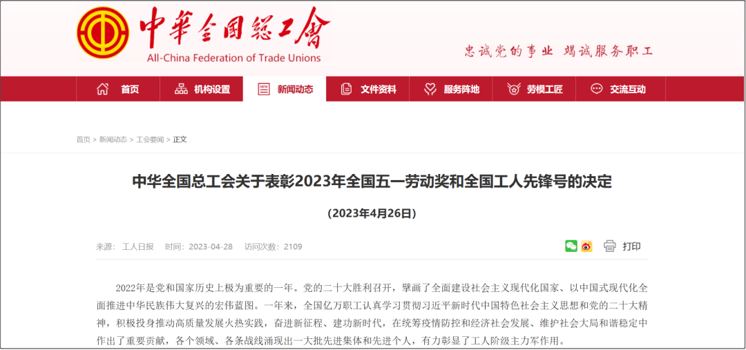 ▲ 圖 | 《中華全國(guó)總工會(huì)》官網(wǎng)截圖