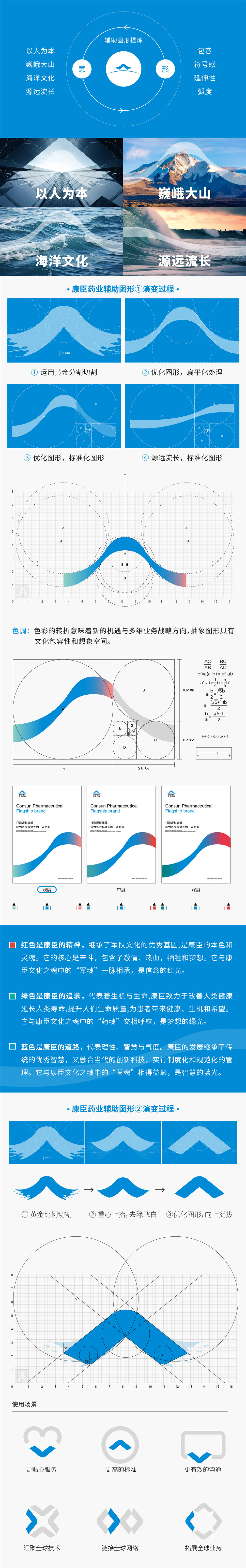 輔助圖形作為企業(yè)品牌LOGO的延伸,以強(qiáng)烈且極具個(gè)性的視覺特征,在使用中抓住受眾視線,強(qiáng)化企業(yè)形象。 康臣藥業(yè)輔助圖形延續(xù)以“人”為本的造型基礎(chǔ),取源遠(yuǎn)流長的含義。提煉元素紐帶+海洋文化,從左到右的動(dòng)勢(shì)具有動(dòng)感,寓意面向未來。 立足醫(yī)藥健康服務(wù)領(lǐng)域,成為鏈接客戶健康生活樞紐上的重要一環(huán)。色彩的轉(zhuǎn)折意味著新的機(jī)遇與多維業(yè)務(wù)戰(zhàn)略方向,抽象圖形具有文化包容性和想象空間。