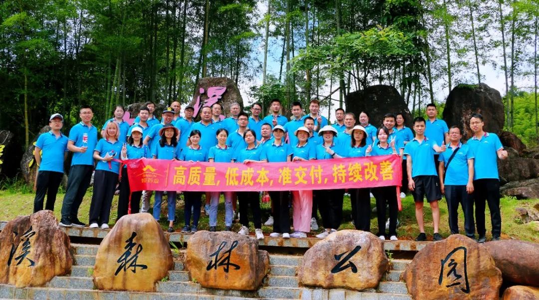 ▲圖 | 康臣藥業(yè)廣州基地開展千瀧溝大瀑布登山團建活動合影