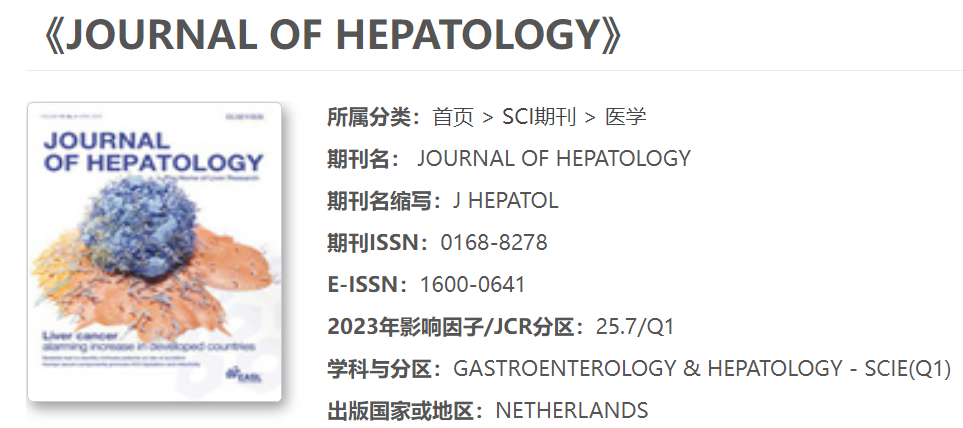 此研究成果摘要已正式發(fā)表在《JOURNAL OF HEPATOLOGY》(2023年影響因子/JCR分區(qū):25.7/Q1)期刊上。