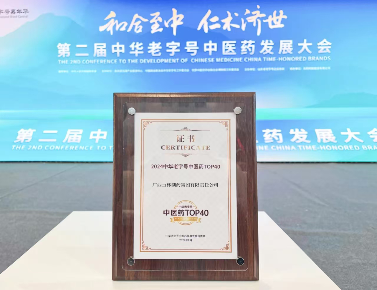 ▲ 圖 | “2024中華老字號(hào)中醫(yī)藥TOP40”證書(shū)