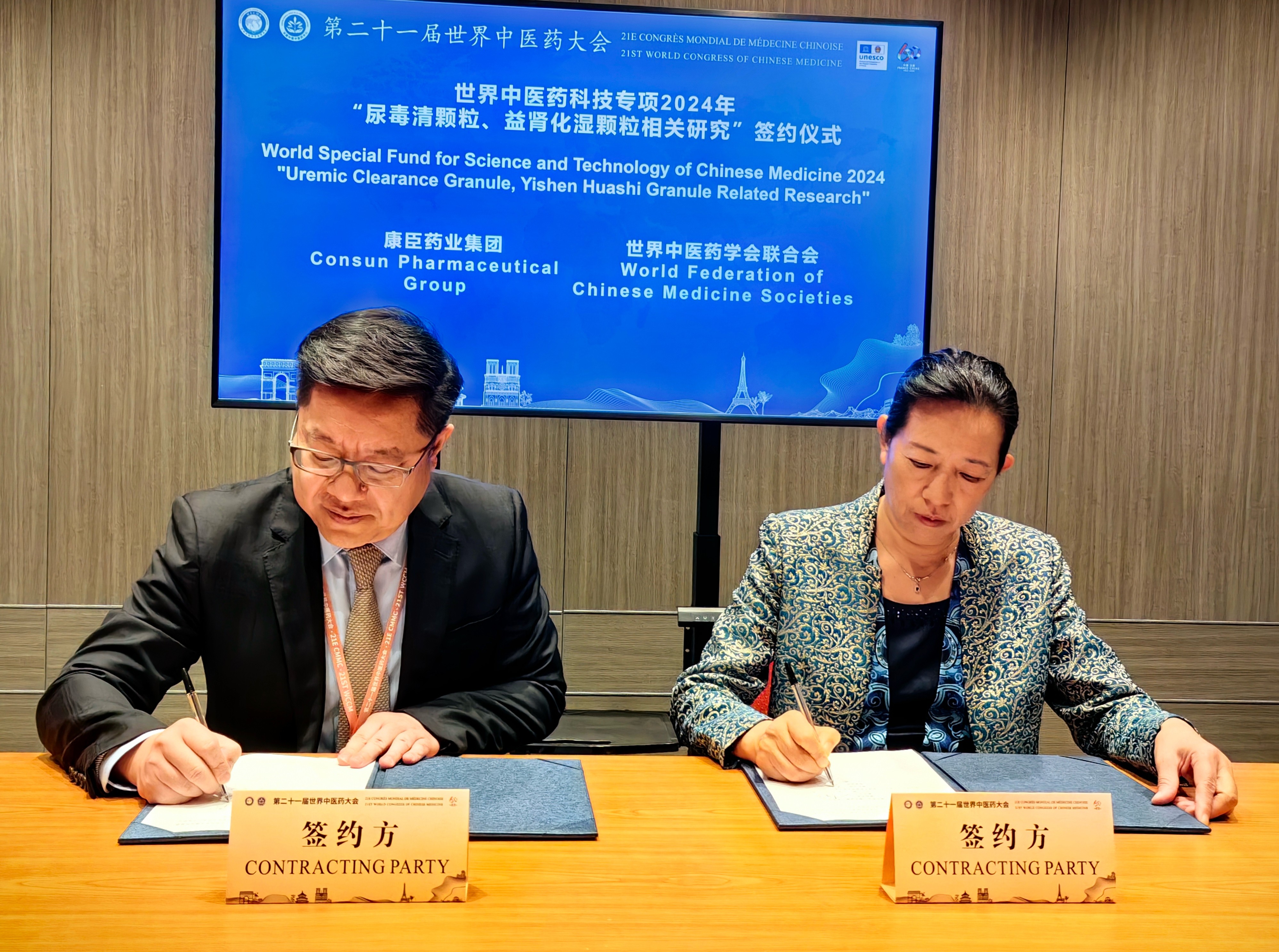 ▲ 圖 | 世界中醫(yī)藥科技專項2024年“尿毒清顆粒、益腎化濕顆粒相關(guān)研究”項目正式簽約