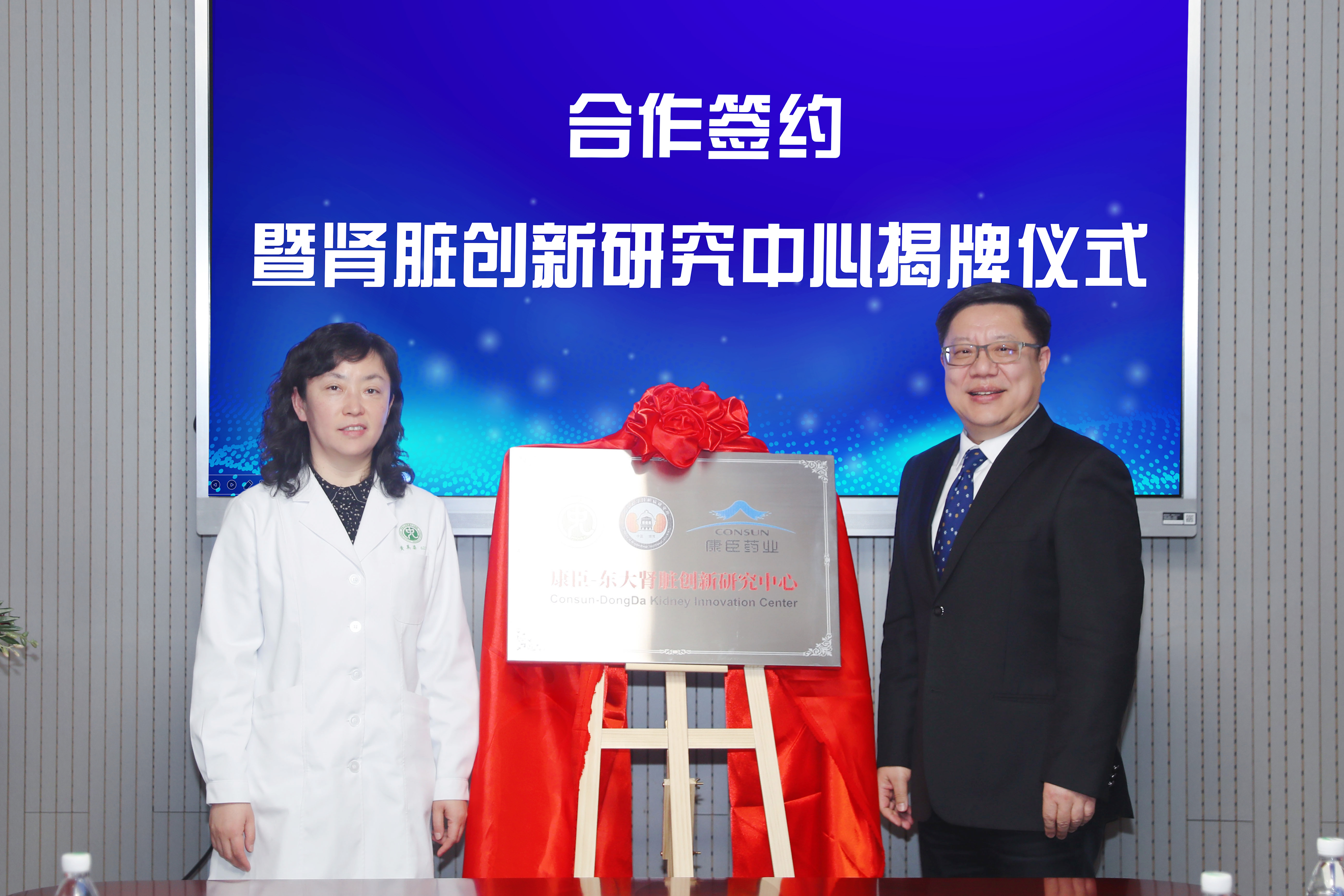 ▲ 圖 | 黃英姿執(zhí)行院長(zhǎng)與安猛主席共同為康臣-東大腎臟創(chuàng)新研究中心揭牌