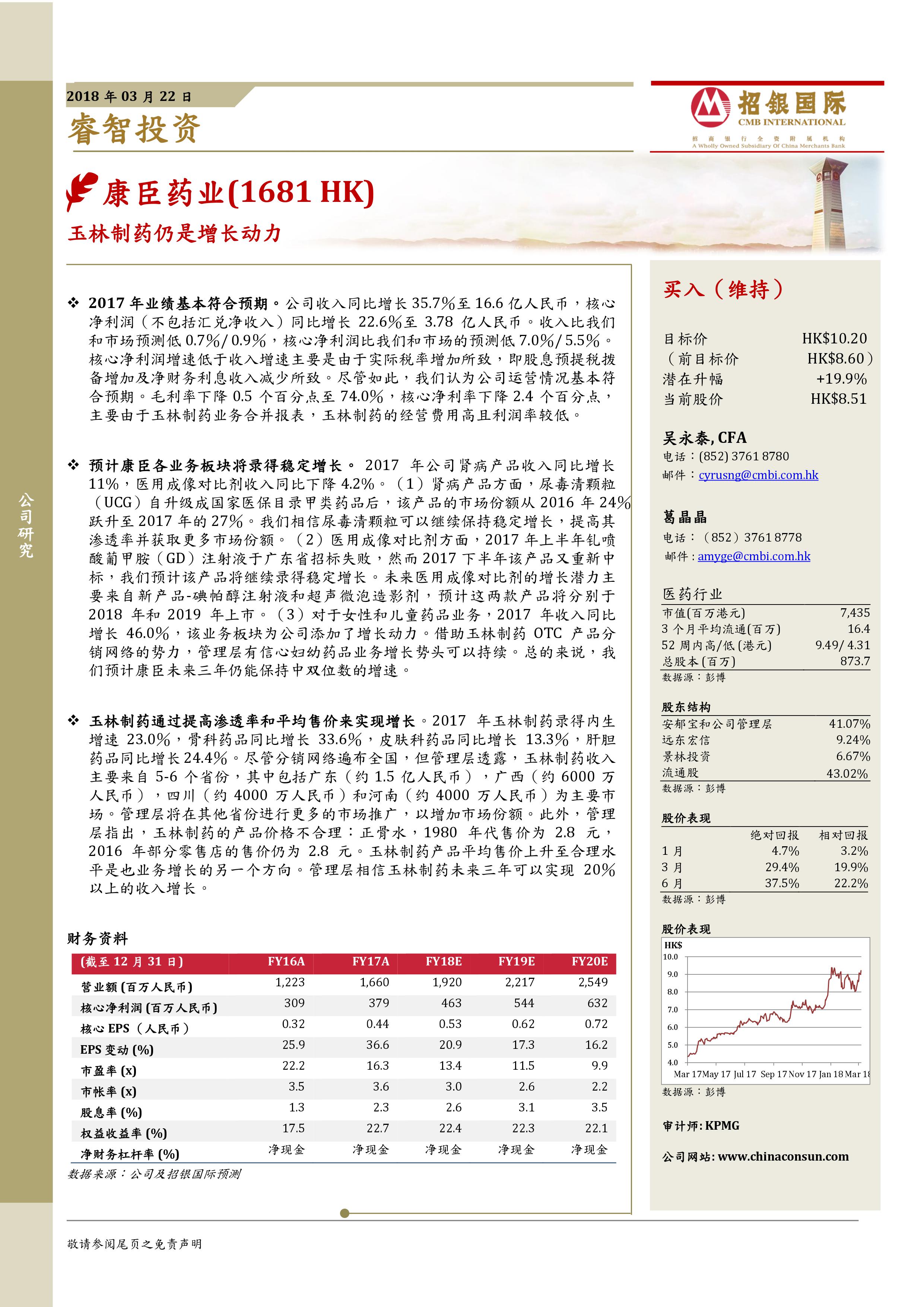 招銀國(guó)際-康臣1681:玉林制藥仍是增長(zhǎng)動(dòng)力,維持“買(mǎi)入”評(píng)級(jí)