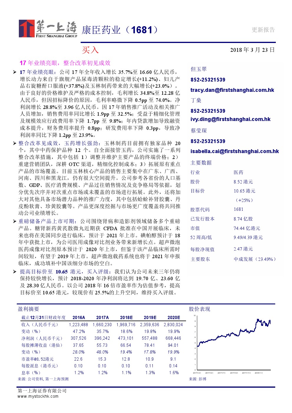第一上海-康臣藥業(yè)1681:17 年業(yè)績亮眼,整合改革初見成效,買入評級,目標(biāo)價10.65港元