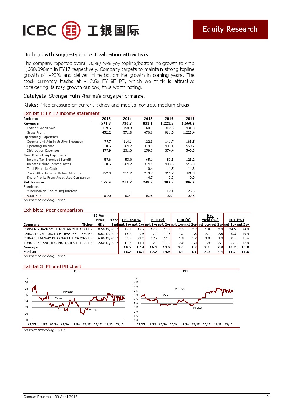 公司持續(xù)提高玉林制藥業(yè)績(jī)表現(xiàn),公司內(nèi)生增長(zhǎng)穩(wěn)定。管理層通過進(jìn)一步挖掘玉林產(chǎn)品線,同時(shí)保持本體業(yè)績(jī)穩(wěn)健增長(zhǎng),力求“三年再造一個(gè)康臣”。公司18年收入增長(zhǎng)約20%,凈利潤(rùn)增速保持同比增速,目前公司股價(jià)18年市盈率為12.6倍,具有吸引力。