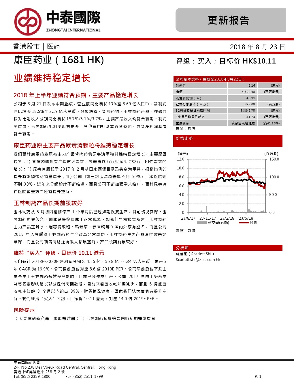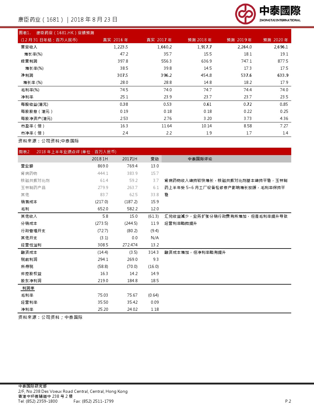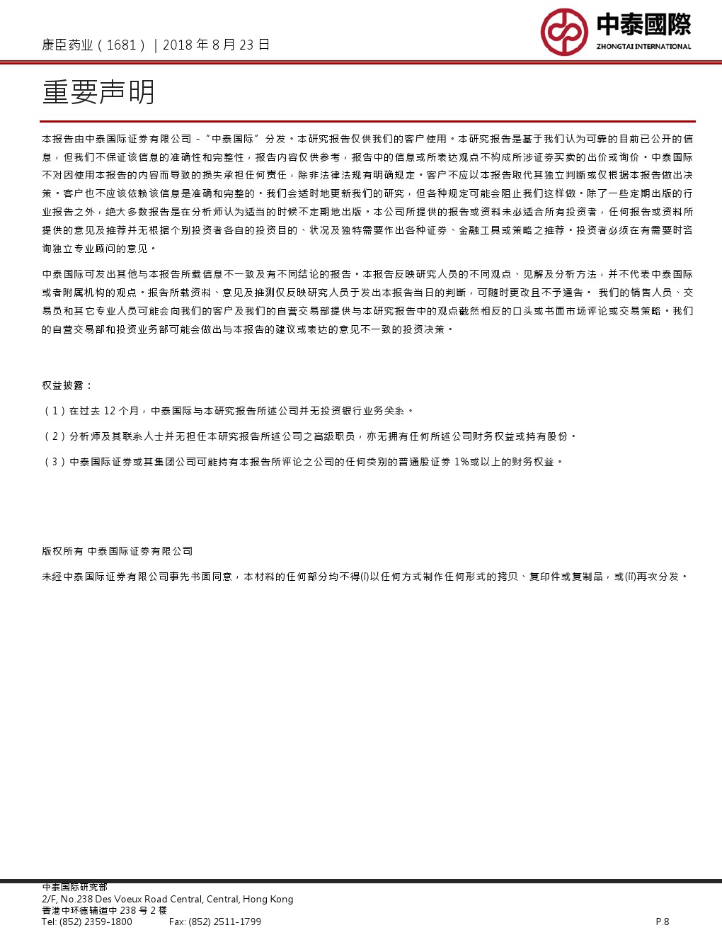 中泰國際-康臣藥業(yè)1681:業(yè)績保持穩(wěn)定增長