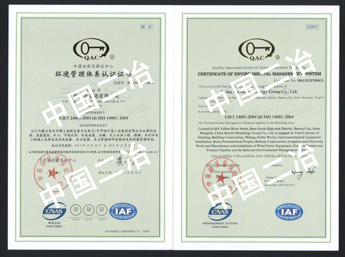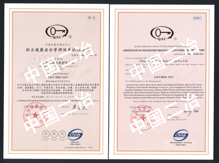 質(zhì)量、職業(yè)健康安全、環(huán)境管理體系認(rèn)證證書