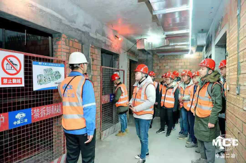 清晨,我們早早的來到公司,乘坐大巴一同從公司出發(fā),一個多小時的車程后,我們抵達了董家埂項目部。透過車窗,第一眼就看到了夾道歡迎我們的董家埂同事們,背后則是一棟棟正在施工的高聳大樓,大家被同事們熱情的包圍中,通過項目大門,在大門門衛(wèi)室旁的空地處列隊領(lǐng)取并佩戴好安全帽和反光背心,然后在董家埂管理人員的帶領(lǐng)下進入施工場所進行觀摩。