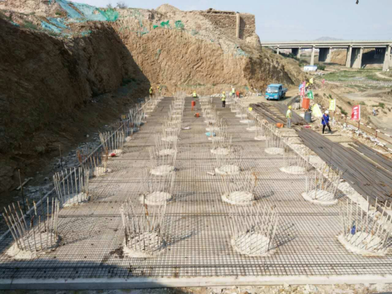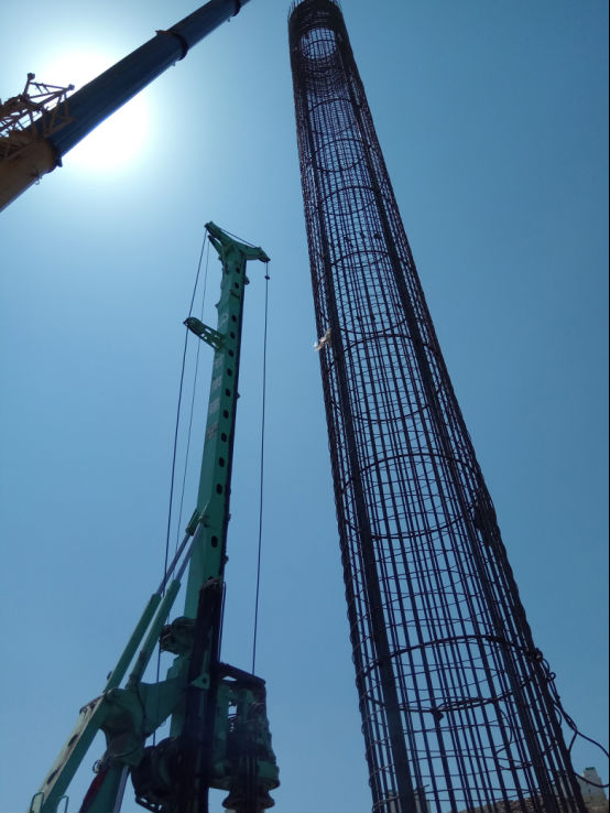 項目施工者秉承“聚焦中冶主業(yè),建設美好中冶”發(fā)展愿景根據(jù)工程特點,優(yōu)化施工工藝。以“安全責任,重于泰山”為己任,克服施工作業(yè)面小,地層堅硬等原因,在樁基部分采用人工挖孔施工,沖擊鉆施工和旋挖鉆多種方式配合施工大幅度提高了施工效率,降低了施工成本,加快了施工進度。樁基鋼筋籠施工時,采用汽車吊大小鉤配合動滑輪作業(yè),克服了整節(jié)鋼筋籠重、長的施工難點,改進鋼筋籠分節(jié)安裝施工工藝,采用無分節(jié)施工工藝,全部采用平焊,無對接段的立焊,提高了焊縫的質(zhì)量,節(jié)約了時間,提高生產(chǎn)效率,加快施工進度。在承臺、拱座及立墻結構大體積混凝土施工時,分別采用外敷草簾灑水,內(nèi)通冷卻水管降溫的施工工藝,保證混凝土澆筑后的養(yǎng)護條件。項目全體參戰(zhàn)職工發(fā)揚“一天也不耽誤,一天也不懈怠”樸實厚重的中冶精神,群策群力,積極參與施工方案與施工工藝的設計與編制工作,集思廣益,針對各工序的施工難點編制專項施工方案,攻克技術難關,各項施工方案逐個完善。樁基工程按照施工方案,精準放樣——鉆孔——清孔——鋼筋籠安裝——水下混凝土澆筑連續(xù)施工。樁基施工完畢后,進行土方開挖,樁頭混凝土鑿除,樁基完整性檢測,地基驗槽,墊層澆筑、承臺及拱座結構施工。各工序緊密銜接,五個承臺流水作業(yè),實現(xiàn)高效生產(chǎn),保證施工工期。