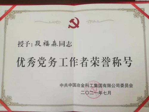 通過不斷地積累與總結(jié),提煉以往工作經(jīng)驗(yàn),不斷加強(qiáng)自身思想建設(shè)、提升工作能力,段福森同志被授予“中冶集團(tuán)安全生產(chǎn)先進(jìn)個(gè)人”“中冶集團(tuán)優(yōu)秀黨務(wù)工作者”“包頭市優(yōu)秀黨務(wù)工作者”“中國(guó)二冶優(yōu)秀黨務(wù)工作者”“中國(guó)二冶先進(jìn)生產(chǎn)工作者”等榮譽(yù)稱號(hào)。