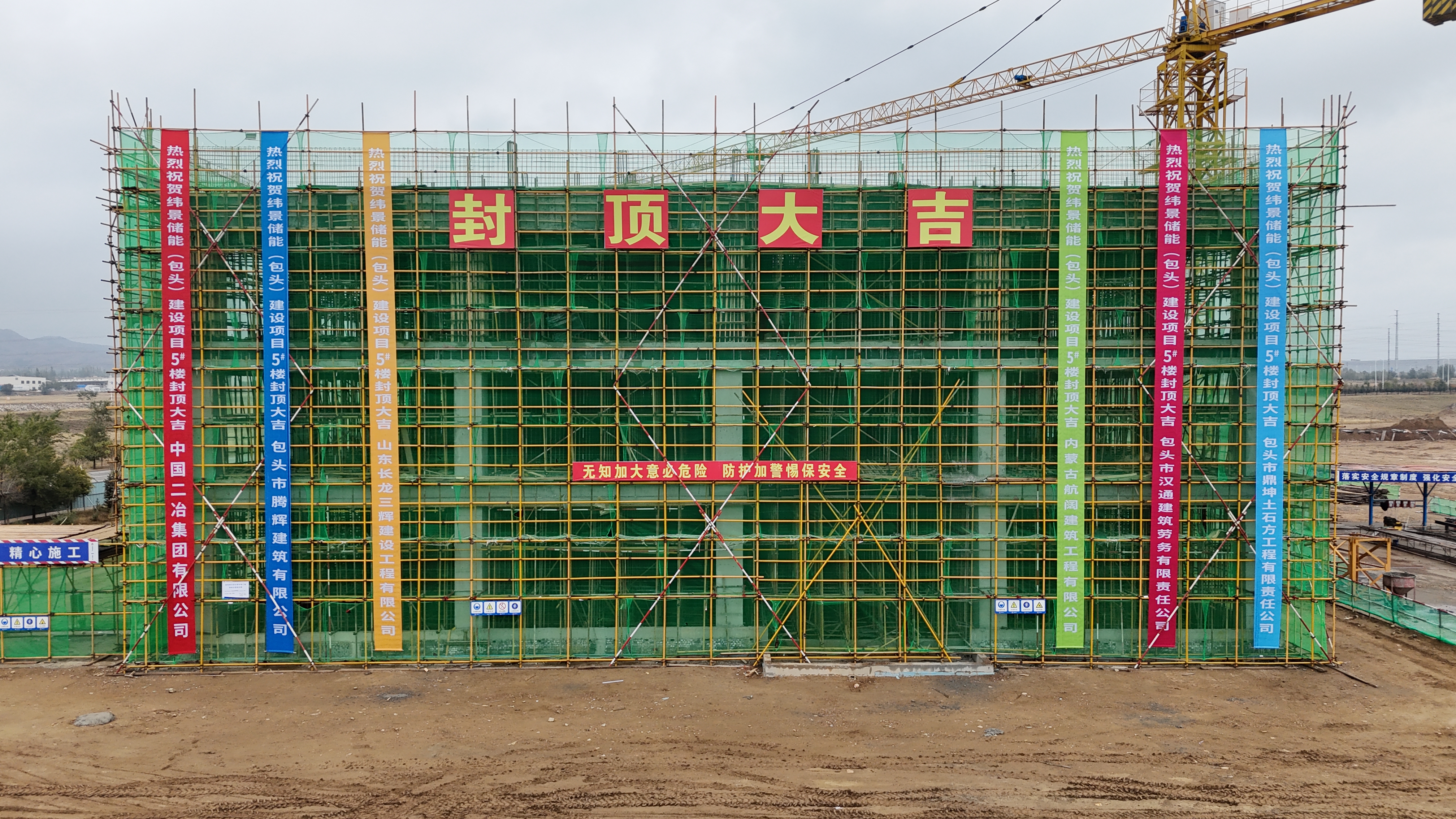 10月13日,市政分公司緯景儲能鋅鐵液流電池(包頭)智造基地建設項目5#綜合樓主體封頂。