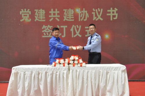 在辦實事、開新局環(huán)節(jié),公司新城佳園項目部黨支部與邯鄲市公安局峰峰礦區(qū)分局太安派出所簽訂黨建共建協(xié)議書,共同推進雙方黨建工作向縱深發(fā)展。隨后,公司黨群工作部副部長王志義為共建黨支部贈送紅色書籍。之后,全體人員集體宣誓,表示將繼承優(yōu)良傳統(tǒng)、立足崗位建功,鑄就精品、追求卓越,團結拼搏、開拓創(chuàng)新,樹一流形象、建一流工程,為峰峰礦區(qū)實現(xiàn)城市化建設貢獻力量。