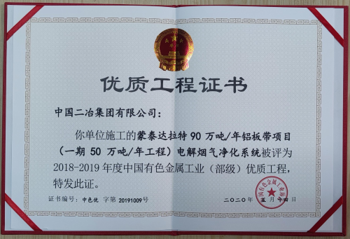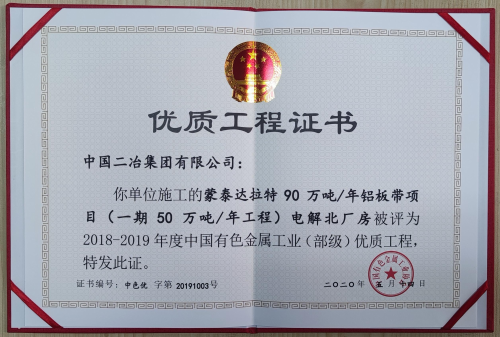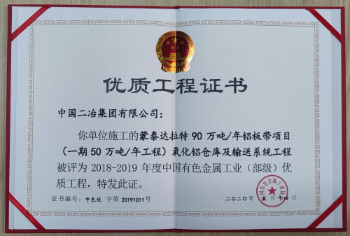 12月13日,中國有色金屬工業(yè)建設(shè)工程質(zhì)量2018-2019、2019-2020年度表彰會在甘肅省蘭州市隆重舉行。由中國二冶鋼構(gòu)分公司承建的內(nèi)蒙古達(dá)拉特旗90萬噸/年鋁板帶項目(一期50萬噸/年工程)的“電解北廠房”、“煙氣凈化系統(tǒng)”和“氧化鋁倉庫及輸送系統(tǒng)”等三項工程榮獲“2018-2019年優(yōu)質(zhì)工程”獎。該公司副總經(jīng)理田廣林、項目經(jīng)理馮建偉、項目總工程師鄭鑫三名同志被授予“2018-2019年度中國有色金屬工業(yè)優(yōu)質(zhì)工程優(yōu)秀管理者”榮譽稱號。