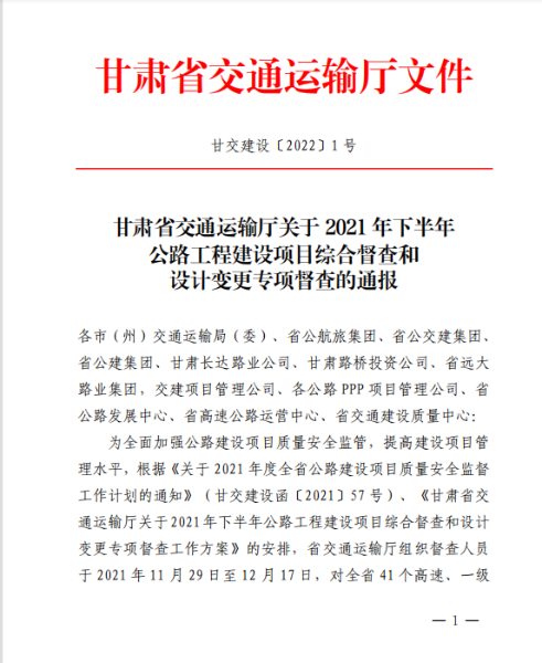 2021年11月29日至12月17日,甘肅省交通運輸廳對甘肅省41個高速公路采取“明查暗訪”和‘“四不兩直”的方式進(jìn)行綜合督查,督查共抽查項目管理機構(gòu)60家,施工標(biāo)段175家,監(jiān)理標(biāo)段97家。中國二冶景禮項目部在此次抽查中,從眾多單位中脫穎而出獲得通報表揚。