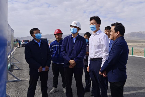 嘉峪關(guān)市副市長何正義;甘肅公航旅酒嘉管理公司董事長陳勝軍;中國二冶酒嘉項目部負(fù)責(zé)人陪同調(diào)研。