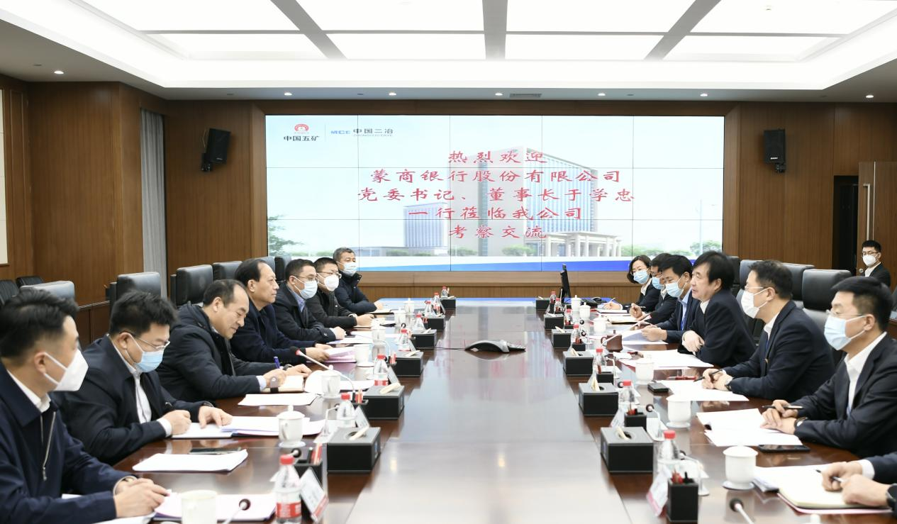 徐永鋒對(duì)于學(xué)忠一行的到訪表示熱烈歡迎,并簡(jiǎn)要介紹了中國(guó)二冶的歷史發(fā)展沿革。他表示,中國(guó)二冶伴隨著新中國(guó)的發(fā)展一路成長(zhǎng)壯大,為中國(guó)鋼鐵工業(yè)從無(wú)到有、從弱到強(qiáng)的發(fā)展作出了巨大貢獻(xiàn)。他指出,在中國(guó)五礦、中冶集團(tuán)的正確領(lǐng)導(dǎo)和包頭市委市政府的大力支持下,中國(guó)二冶憑借行業(yè)資質(zhì)、資金優(yōu)勢(shì)以及管理優(yōu)勢(shì)深耕本土市場(chǎng)取得了優(yōu)異成績(jī),承攬了眾多重點(diǎn)民生工程,工程品質(zhì)優(yōu)良,贏得社會(huì)認(rèn)可和政府肯定。蒙商銀行實(shí)力雄厚,信譽(yù)優(yōu)良,作為駐包國(guó)企積極踐行金融服務(wù)國(guó)家與區(qū)域戰(zhàn)略發(fā)展的使命,與中國(guó)二冶發(fā)展愿景一致,希望雙方針對(duì)具體項(xiàng)目盡快找到合作切入點(diǎn),打開(kāi)合作新局面,共同發(fā)力,為包頭百姓謀利益,謀福祉。