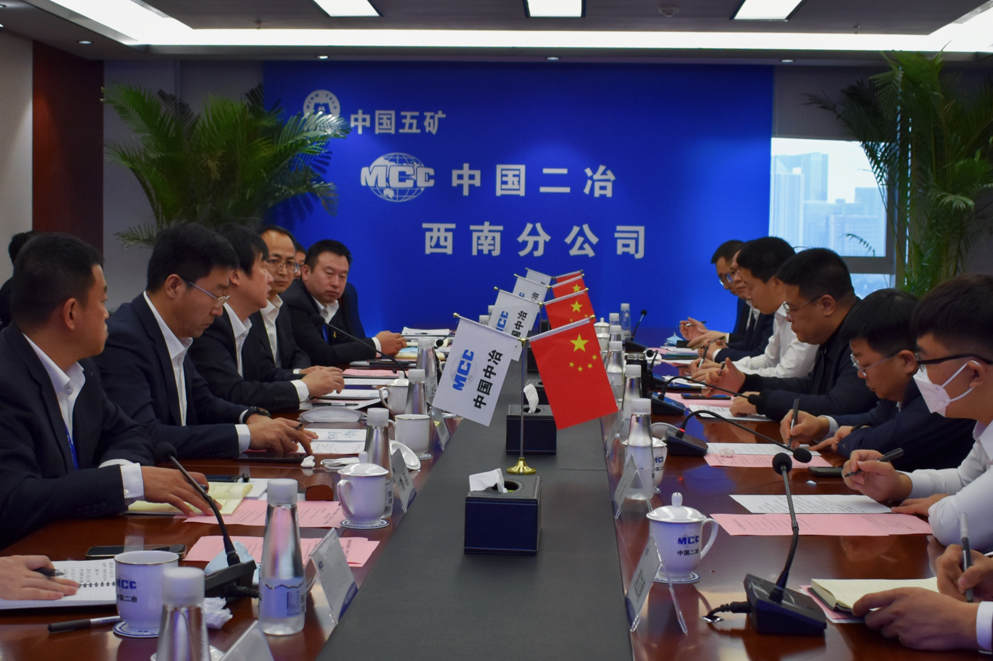霸州經(jīng)濟開發(fā)區(qū)黨工委副書記韓楷,霸州市政府辦公室主任張亞軍,霸州市政府經(jīng)濟金融研究中心主任張策,霸州經(jīng)濟開發(fā)區(qū)招商局局長馬志興,霸州經(jīng)濟開發(fā)區(qū)招商局副局長趙立綱、李志煒;中國二冶總經(jīng)理助理張建強,公司副總經(jīng)濟師、西南分公司總經(jīng)理鮑文明,西南分公司黨委書記劉喆、總會計師劉虎慶、副總經(jīng)理張鐵參加會談。