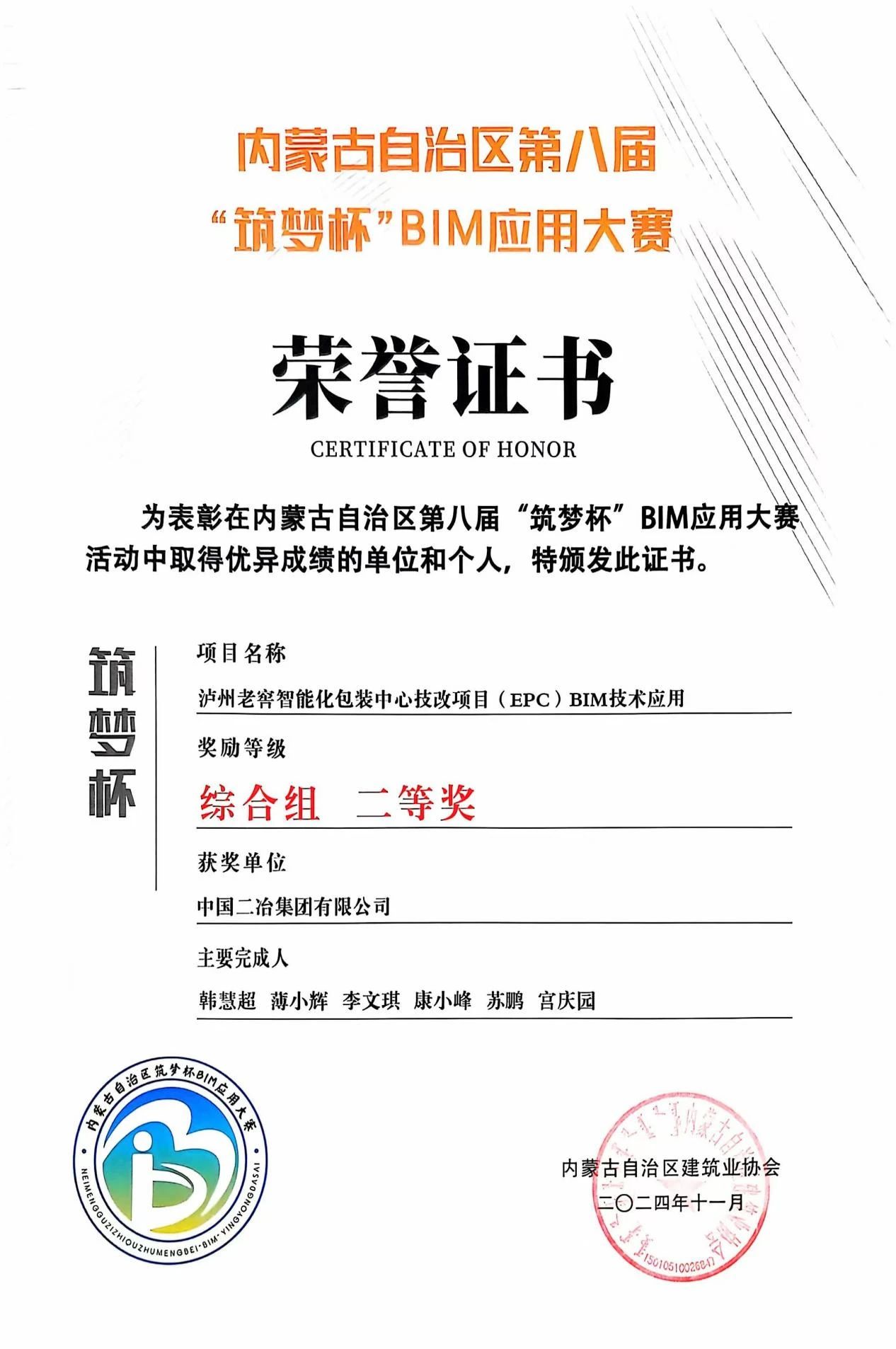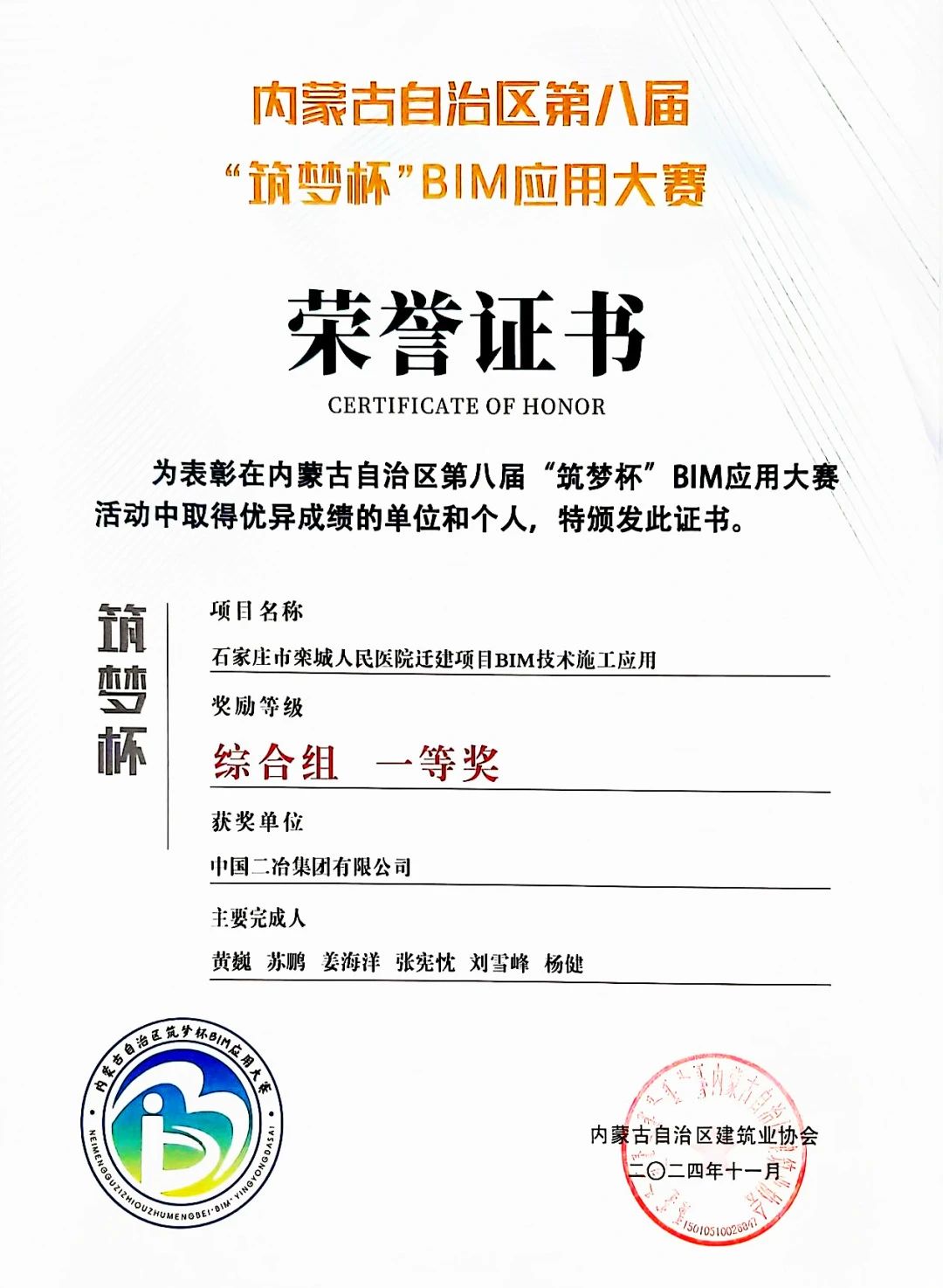 近日,內(nèi)蒙古建筑業(yè)協(xié)會公布了內(nèi)蒙古自治區(qū)第八屆“筑夢杯”BIM應(yīng)用大賽獲獎名單,中國二冶《石家莊市欒城人民醫(yī)院遷建項目BIM技術(shù)施工應(yīng)用》《瀘州老窖智能化包裝中心技改項目(EPC)BIM技術(shù)應(yīng)用》兩項技術(shù)分別榮獲內(nèi)蒙古自治區(qū)第八屆“筑夢杯”BIM應(yīng)用大賽綜合組一等獎和二等獎。
