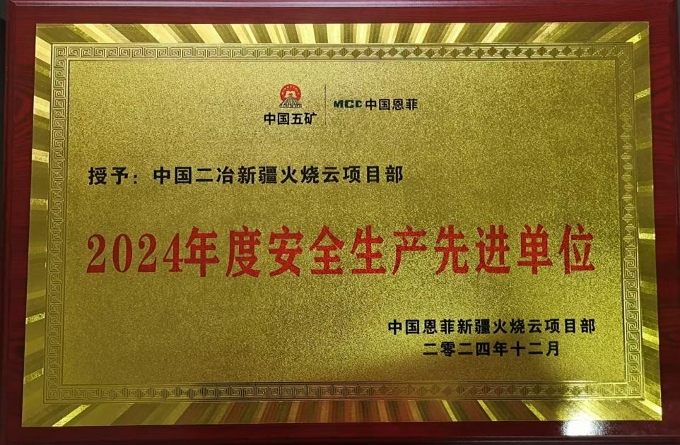 近日,中國二冶新疆火燒云鉛鋅礦60萬噸/年鉛鋅冶煉工程項目憑借其卓越的安全管理體系和出色的執(zhí)行成效,在眾多項目中脫穎而出,榮獲總包單位中國恩菲頒發(fā)的“安全生產(chǎn)先進單位”稱號。