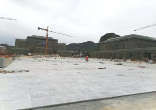 在這三個單體項目中,因為南大門已接近尾聲,從南大門放眼望去,首先看到的就是校園廣場,而且儀式當天還要給廣場進行簡單的裝飾并在廣場上舉辦文藝活動,因此校園廣場整個施工進度就成了重中之重。民族大學武鳴新校區(qū)項目部對此高度重視,積極響應“開局即決戰(zhàn),起步即沖刺”的號令,迅速掀起施工大干熱潮。按照業(yè)主的規(guī)劃要求,責成分包單位,組織精干力量,克服當地“回南天”天氣的不利影響,加快校園廣場項目的施工進度,工人們加班加點,爭取保質保量的完成任務。