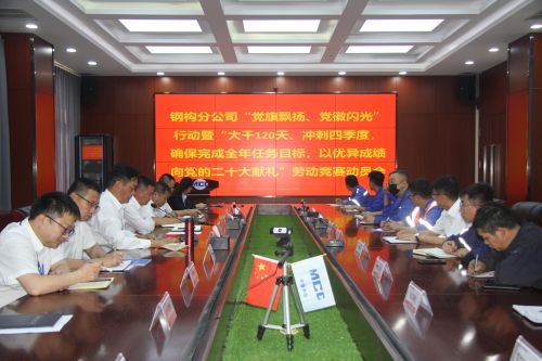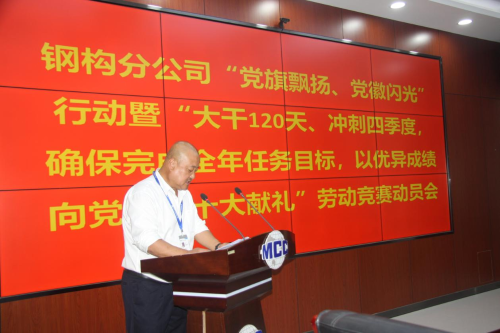 9月15日,鋼構(gòu)分公司黨委召開(kāi)“黨旗飄揚(yáng)、黨徽閃光”行動(dòng)暨“大干120天、沖刺四季度,確保完成全年任務(wù)目標(biāo)以?xún)?yōu)異成績(jī)向黨的二十大獻(xiàn)禮”勞動(dòng)競(jìng)賽動(dòng)員會(huì)。鋼構(gòu)分公司黨委書(shū)記、總經(jīng)理王志義發(fā)表講話,分公司紀(jì)委書(shū)記、副總經(jīng)理田廣林主持會(huì)議。