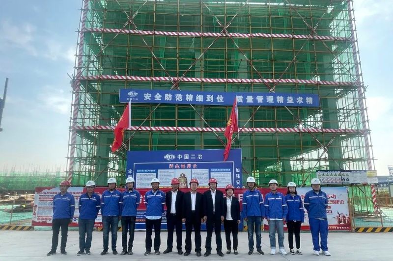 中國二冶城建分公司領(lǐng)導班子、安全總監(jiān)分別深入競賽結(jié)對單位項目施工現(xiàn)場指導并開展授旗儀式