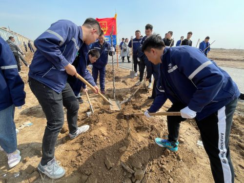 青年朋友們認真聆聽工人師傅講解植樹方法步驟和注意事項后,帶上鐵鍬和種植工具,井然有序地開始樹苗種植?;顒蝇F(xiàn)場,大家植樹造林的熱情十分高漲,有的奮力揮鍬挖坑填土,有的扶苗踩實,分工協(xié)作,密切配合,個個忙的滿頭大汗,干得熱火朝天。經(jīng)過一番忙碌的勞動,一排排新栽樹苗在春日里迎風(fēng)挺立,為大地增添了一抹生機。