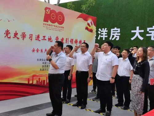 6月23日下午,天津振業(yè)津海房地產(chǎn)開(kāi)發(fā)有限公司聯(lián)合中國(guó)二冶集團(tuán)冶金分公司天津振業(yè)海洋科技園住宅項(xiàng)目、陜西建工集團(tuán)有限公司及天津市北方建設(shè)監(jiān)理事務(wù)所共同舉辦“黨史學(xué)習(xí)進(jìn)工地,黨建引領(lǐng)鑄精品”活動(dòng),中國(guó)二冶集團(tuán)天津分公司總經(jīng)理王哲、天津振業(yè)海洋科技園住宅項(xiàng)目部經(jīng)理?xiàng)罨⒓捌涔芾砣藛T、工人代表參加了本次活動(dòng)。