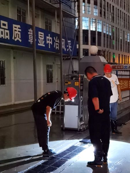 風(fēng)雨將至,但安全隱患未除,身著“中冶藍(lán)”的建設(shè)者們總是不放心?,F(xiàn)場人員全部得到妥善安置后,項目部防臺防汛領(lǐng)導(dǎo)小組逆風(fēng)而行冒雨深入施工現(xiàn)場,對臺風(fēng)天氣下可能存在的安全隱患進行逐一排查,當(dāng)場發(fā)現(xiàn)問題,當(dāng)場加固整改。為了防止出現(xiàn)人員反流,項目部堅持夜間巡查制度,對施工現(xiàn)場及作業(yè)生活區(qū)進行值守,做好現(xiàn)場基坑降排水措施,防治基礎(chǔ)泡水及雨水倒灌,將災(zāi)害損失降到最低。