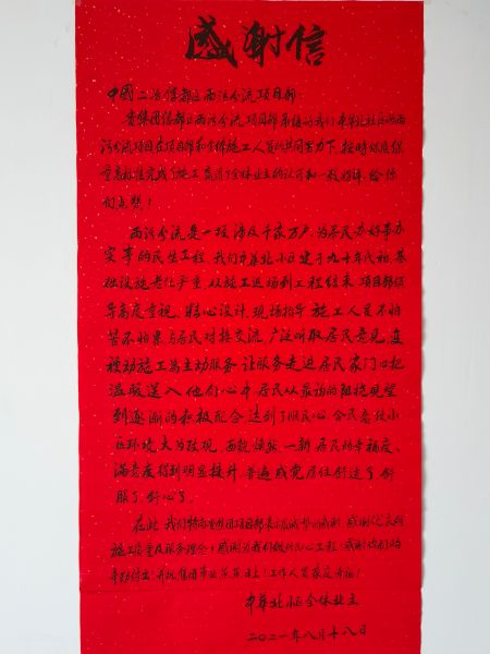 項目負責人盧晨表示:“感謝信是居民對邢臺項目部工作的肯定,也傳達出老舊小區(qū)雨污水分流改造帶給居民的幸福感和獲得感。”