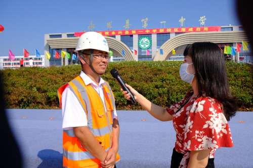 在揭牌儀式后,中國(guó)二冶永興一中項(xiàng)目經(jīng)理王海洋接受了當(dāng)?shù)孛襟w記者的采訪。他指出,中國(guó)二冶項(xiàng)目部面對(duì)工程時(shí)間緊,任務(wù)重,難度大等嚴(yán)峻形勢(shì),在中國(guó)二冶的正確領(lǐng)導(dǎo)下,在相關(guān)職能部門(mén)的鼎力支持,通力合作下,克服了疫情及雨天和惡劣天氣帶來(lái)的不利影響,充分發(fā)揚(yáng)了“堅(jiān)韌不拔,勇攀高峰”的企業(yè)精神,精心組織,日夜奮戰(zhàn),搶工趕工,為永興一中的如期開(kāi)學(xué)做了大量卓有成效的工作,彰顯了央企的責(zé)任擔(dān)當(dāng),確保了工程的按期履約,同時(shí)也得到了當(dāng)?shù)乜h委縣政府和當(dāng)?shù)乩习傩盏母叨仍u(píng)價(jià)。