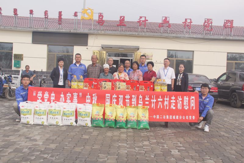九月秋風(fēng)送爽,九月丹桂飄香,帶著“永遠(yuǎn)跟黨走”的信念和初心。9月13日,中國二冶城建分公司開展“學(xué)黨史 辦實事”中秋.國慶雙節(jié)到烏蘭計六村走訪慰問活動,共同與當(dāng)?shù)乩щy群眾歡度中秋,歡慶祖國92歲生日。